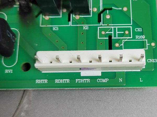 海爾冰箱電腦主板上面英文標(biāo)識 HTR代表化霜加熱器、RHTR代表門柱電熱管、RDHTR代表冷藏室化霜電熱管、FDHTR代表冷凍室化霜電熱管、COMP代表壓縮機供電、N和L分別代表零線與火線。
