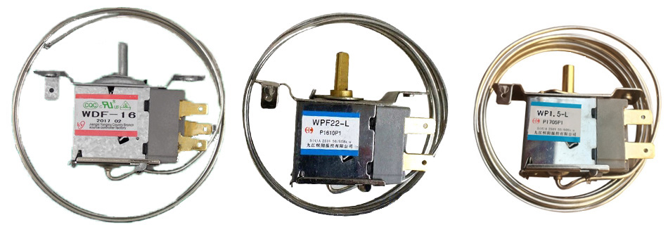 2、冰箱冰柜溫控器 WDF16、WPF22、WP1.5 這些型號的區(qū)別:WDF16 表示控制溫控最低在-16℃的定溫復(fù)位型溫控器,常用于家用冰箱的冷藏室;WPF22 表示控制溫度最低在 -22℃的溫差復(fù)位型溫控器(相差幾度回位接通),常用于冷凍柜;WP1.5 表示控制溫度最低在 +1.5℃的溫差復(fù)位型溫控器。不能用錯溫控器,如果冷藏柜用冷凍柜的溫控器會造成壓縮機(jī)不停機(jī),把青菜給凍壞了;而冷凍柜用了冷藏柜的溫控器會造成壓縮機(jī)停機(jī)時間太早,需要冷凍的食品不能冰凍起來。