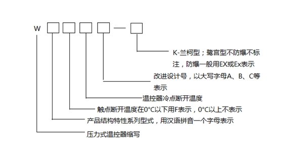 溫控器型號中第一個字母 “W” 為 “溫控器” 的漢語拼音的首字母;第二個字母最常見的為 “P” 或者 “D”,其中 “P” 代表 “普通型”,“D” 代表 “定溫復(fù)位型” ;第三位如果是字母 “F” 代表 “負(fù)”,也就是0度以下的溫度,如果第三位(或者第四位)是數(shù)字,代表冷點(diǎn)斷開溫度,也就是能夠控制的最低溫度;一般主要參數(shù)就是看前3位或者前4位字母和數(shù)字了。