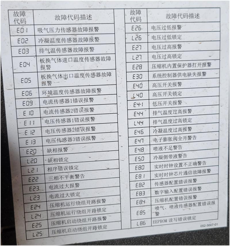 EMERSON艾默生風幕柜冷凝機組控制器故障代碼
