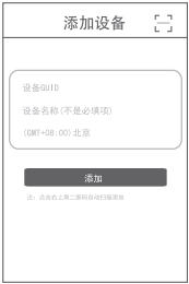 3. 設(shè)備添加--登陸后點擊右上方“+”添加GUID, 可直接輸入GUID號或掃描產(chǎn)品中GUID二維碼