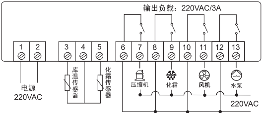◇制冷、化霜、風機、水泵輸出觸點容量:3A/220VAC