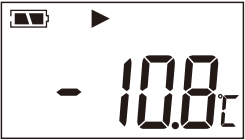 ”符號(hào)點(diǎn)亮,表明溫度超上限報(bào)警;測(cè)量溫度小于等于溫度下限時(shí),在溫度狀態(tài)顯示界面下“