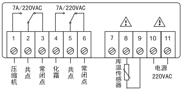 8、化霜輸出接點(diǎn)容量:7A/220VAC