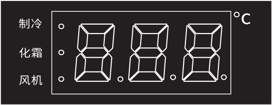 11、數(shù)碼顯示:三位數(shù)碼管+狀態(tài)指示燈<設置燈;制冷燈;化霜燈;風機燈>