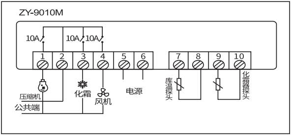 10、風機、化霜繼電器容量:10A/110-220VAC
